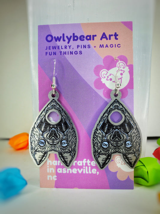 EARRINGS: Silver Bat Ouija Planchette Dangle Earrings