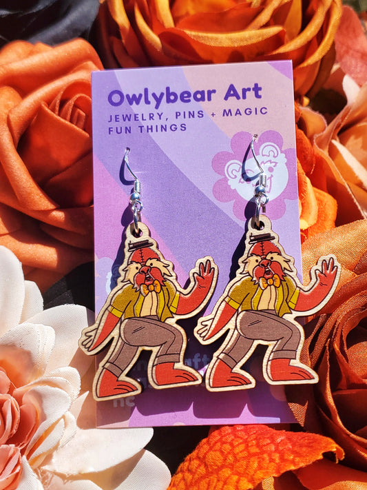 EARRINGS: Cottagecore Hipster Bigfoot Wood Dangle Earrings