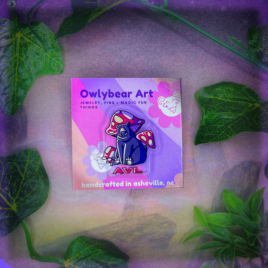 ASHEVILLE: Asheville AVL Black Bear with Mushroom Cap Acrylic Pin