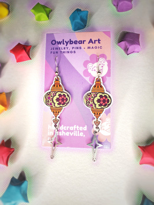EARRINGS: Magical Stained Glass Hanging Lamp Dangle Charm Earrings