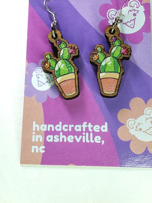 EARRINGS: Cute Cactus Wood Dangle Earrings