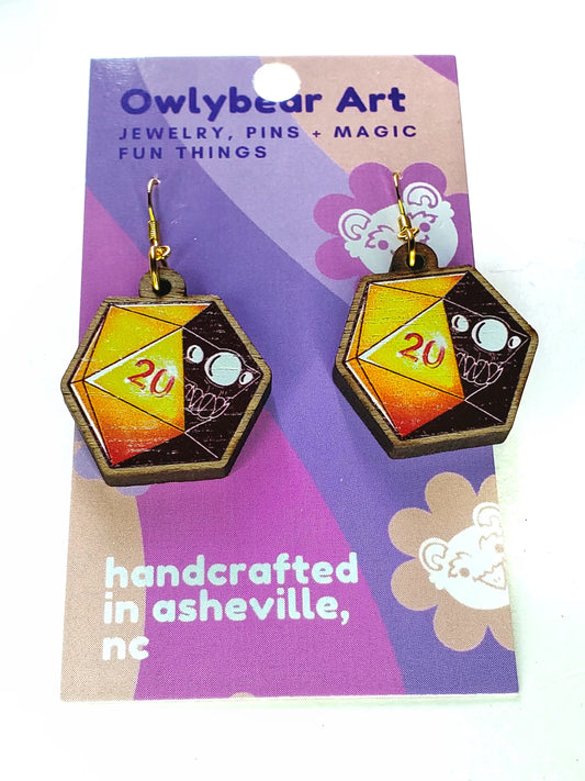 EARRINGS: D&D Dice Mimic d20 Wood Earrings