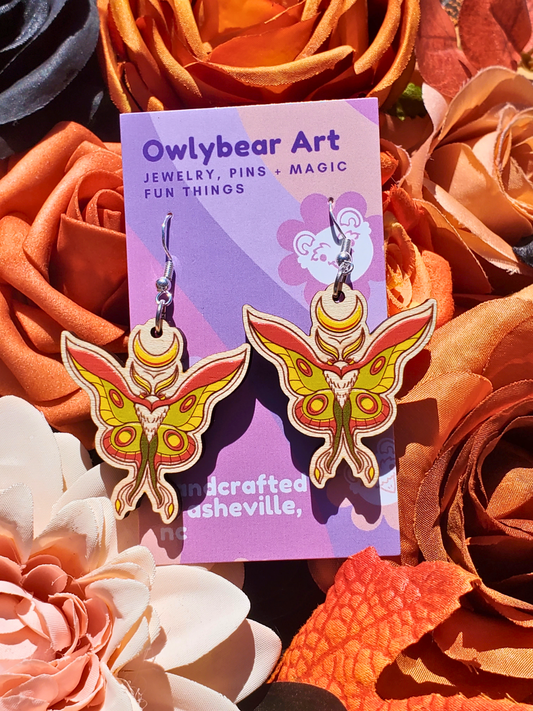 EARRINGS: Celestial Moth Wood Dangle Earrings