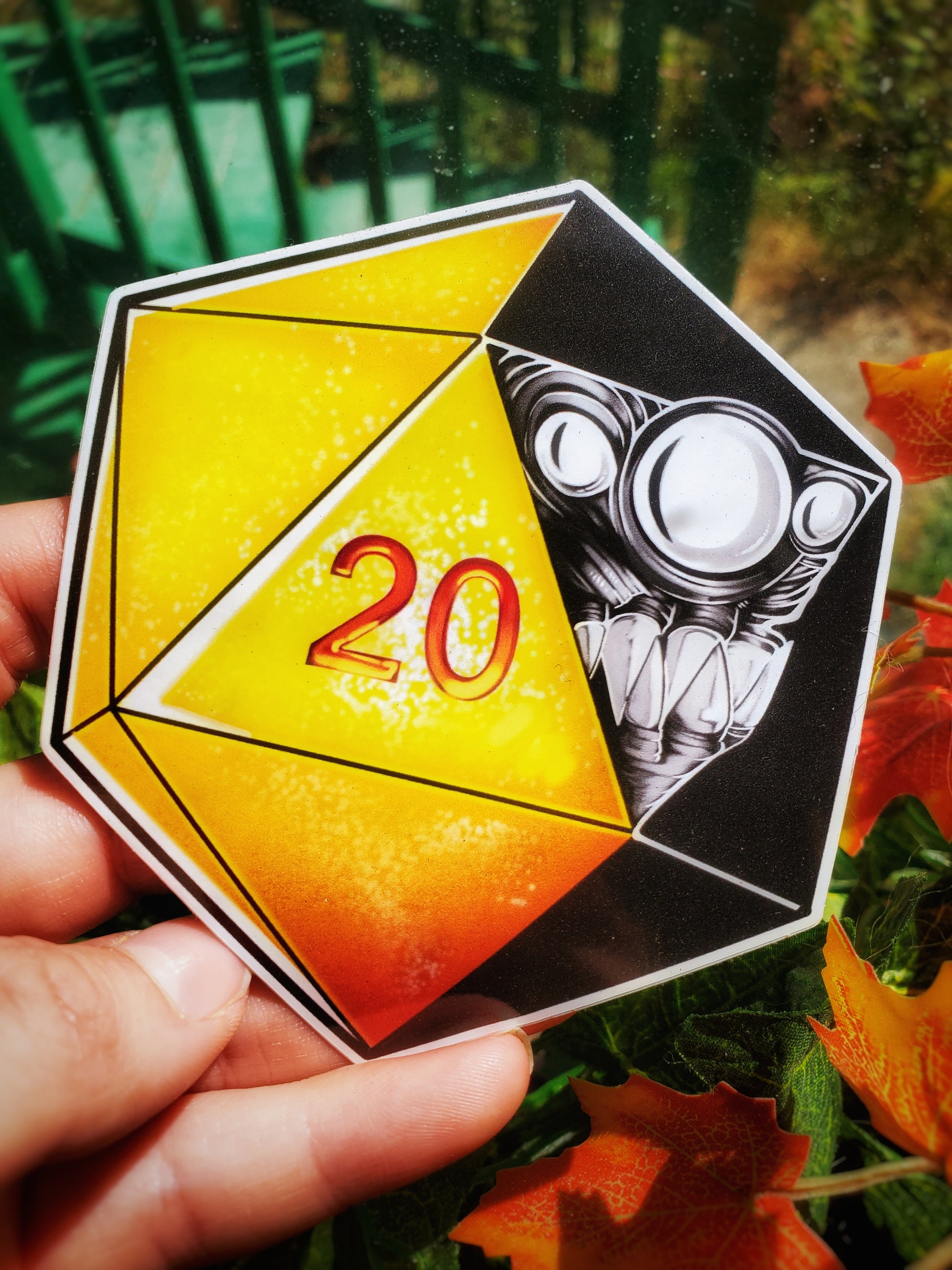 STICKERS: RPG Mimic d20 Dice Sticker | Dungeons & Dragons Inspired Monster Sticker
